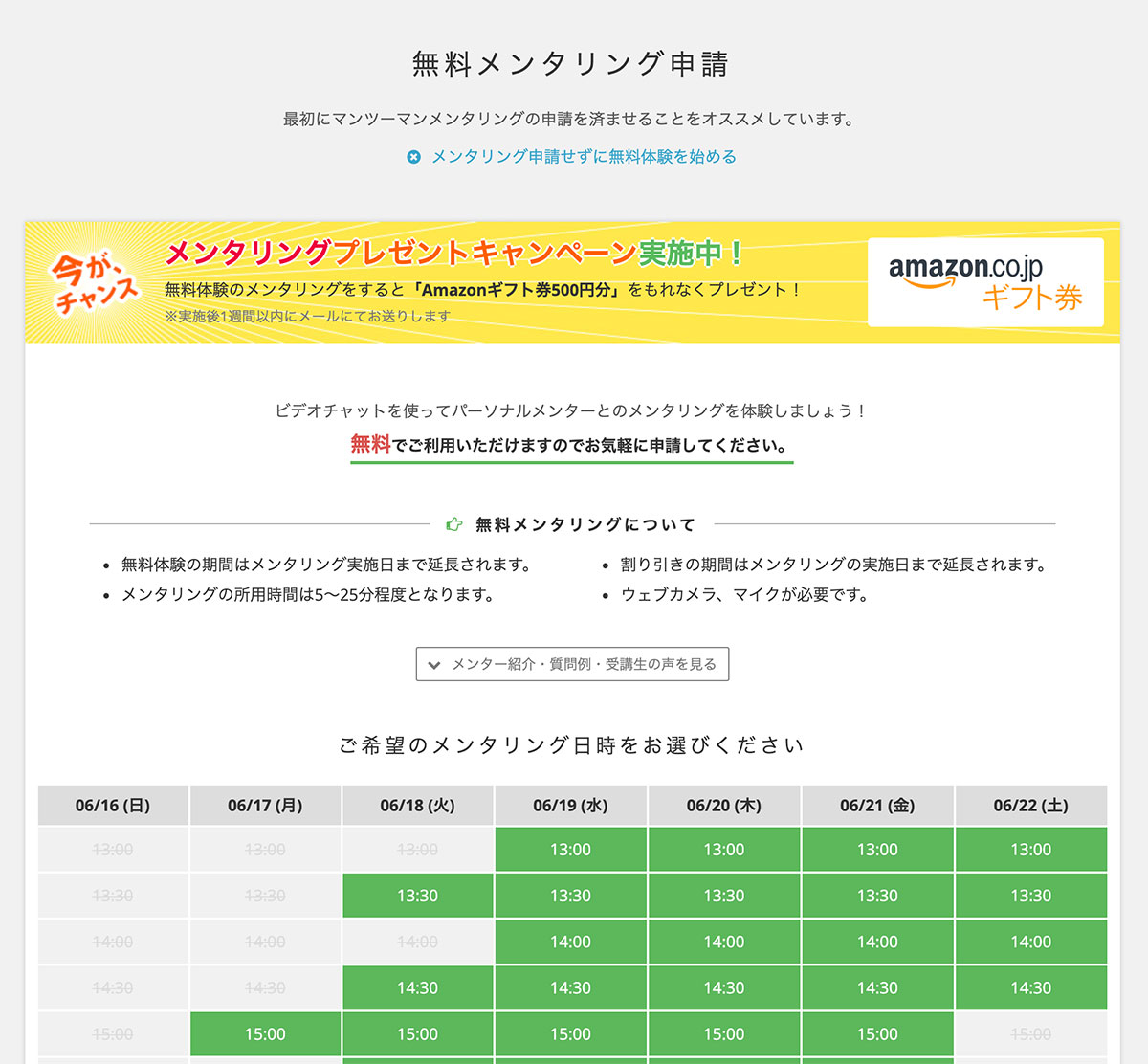 - メンタリング申し込みでアマゾンギフト券もらえる