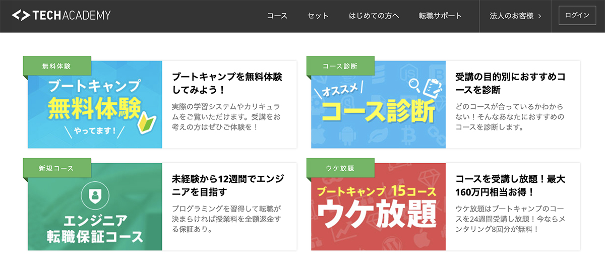 プログラミングスクールの中で一番有名、かつ人気のテックアカデミーです。