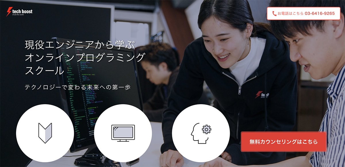 まだまだ知名度は低いものの独自のカリキュラムがあるテックブーストも一押しのプログラミングスクールです。